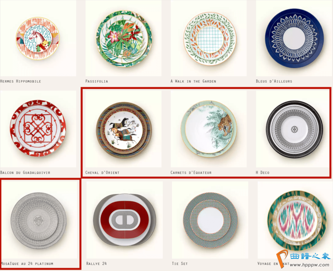 Hermès官网正在售的餐盘,红线框出的是帕丽斯婚礼礼品清单中所涉及的几个系列
