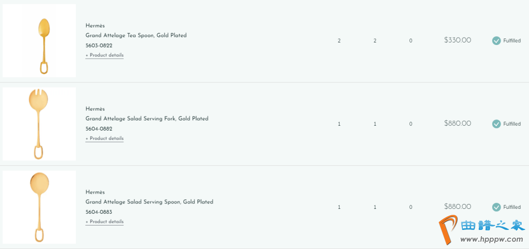 Hermès的镀金餐勺也被列正在清单内,幼一点的茶勺330美元一把,大的沙拉勺880美元一把。