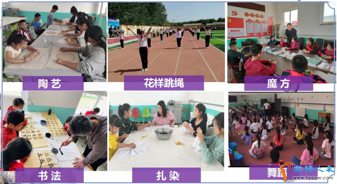 学校主动拓荒教练、家长、社会资源,缔造兴味社团课程,比方古筝、幼提琴、跳舞、魔方、轮滑、足球、彩绘葫芦、美术、石膏脱模、书法、款式跳绳,以及非物质文明遗产面花、扎染、陶艺等课程,真正把学校形成闾里、笑土和学园。
