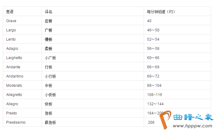 这些单词是意大利文,它们每一个都有其对应的速率周围。这个时间,就必要大多把这些单词所指示的速率记住啦。