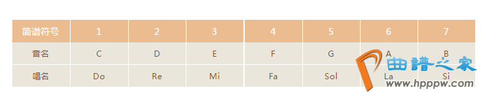 每一个音都有它的名字,即C、D、E、F、G、A、B和它们的起落,这些叫做它们的“音名”。可是,正在唱谱时平常不会直接读字母,而是按1(do)2(re)3(mi)4(fa)5(sol)6(la)7(si)去唱,这些叫做音的“唱名”。