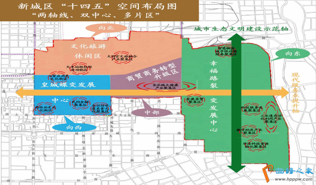 锚定悠长成长,以高圭表高开始高定位的成长谋划引颈区域高质地成长迈出更大程序,新城区“十四五”谋划摘要提出“四向”拓展策略,打造“两轴线、双核心、多片区”的空间结构。