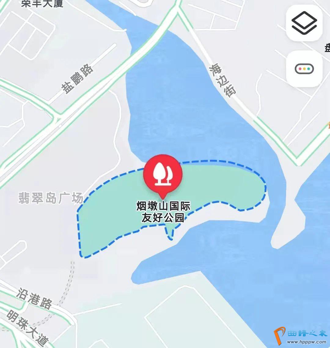 烟墩山国际友爱公园位于盐田河入海口避风塘南侧,三面被海围绕,园内栈道依山体走势而筑,符号着西班牙与盐田区友爱来往的灯塔是公园内的符号性开发,所有遵循西班牙海格力斯灯塔1:2的比例原型复造而成,园内还树立了由西班牙朋侪鲁道夫·纳瓦罗计划的中央青铜雕塑。
