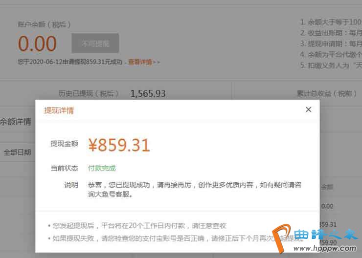 上午按期审查账户提现挖掘这个季度卢松松大鱼号收入859元,固然比不上钩上那些自媒体大神动辄收益上千到上万级别,但相对待目前运营各自媒体平台的主打定位认为博客网站著作扩充曝光引流吸粉除表,分享著作同时可能取得平台收益“搂草打兔子”也是一种劳绩。