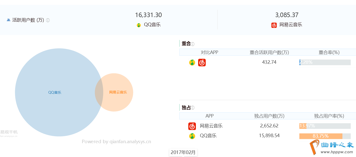 从上图可见,两款APP的用户重合率惟有2。28%,这样低的重合率源于产物的类型,分别于其他类型产物如电商类或者社交类,用户会下载并利用多个产物,由于分别的产物各有着重,能够知足用户分别的需求。而对待转移音笑产物,用户习俗了一款APP考试另一款的意图会很低,由于两款产物管理的需求大致相通,大凡来说用户不会本日听,翌日用网易云音笑,像如许两款APP换着用。以是对待网易云音笑来说念要从手里抢走用户必需超越我方的分歧化逐鹿上风,弯道超车,不然是很难跟这个巨头逐鹿的。