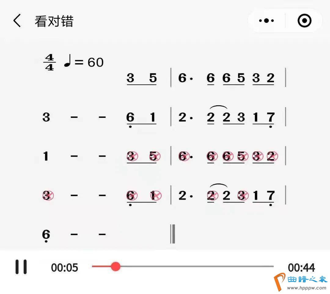 编造打分后,会正在唱错的地方用红叉标注,您可能遵循红叉位子,检验自身的题目。