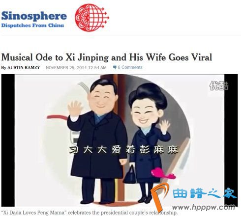 2014岁终至2015岁首,一首“神曲”《习大大爱着彭麻麻》走红汇集,并很疾惹起表媒的合心,《纽约时报》特意揭晓作品《习和妻子的颂歌正在中国热传》,并将歌词翻译成英语: