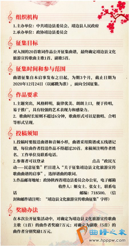 为了确保搜集质地,多出精品,曲作家可与词作家举行疏通,依照笑谱创作条件,可对歌词举行合意调理修正。本次搜集的获奖作品,统统常识产权归属靖边县,作家享有作品的好久签字权和得到一次性表彰人为的权力。靖边县有权对获奖作品举行增删修正和再创作。未获奖作品,作家可自行打点。靖边县文明旅游流传歌曲搜集创作向导幼组对本次举止具有最终注释权。(文晓)