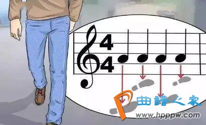 设念咱们正正在走道,一步即是一拍,用音笑表达出来就成了一个四分音符。正在群多半的西方音笑中,每末节有四拍。现正在用咱们的措施来感想节律。