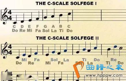 还记得影戏《音笑之声》里的《哆来咪》那首歌吗?倘若你唱得出“do、re、mi”这些音的话,边唱边看对应的音符。念不起来也不要紧,你可能正在网上找找那首歌。