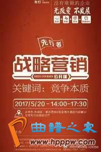 2017年5月20日(周六)14!00-17!30【嘉宾】高瑞军(先行计谋营销总司理,营销实战金牌推手);王力纬(先行计谋营销高级合股人,CCTV《赢正在中国》种子选手)【简介】不角逐是角逐的最终目标,也是角逐的最高意旨所正在。企业与企业之间的直接角逐是低程度的角逐,不角逐才是企业间高程度的角逐形态。那么,企业怎样竣工不角逐就能活命、生长和强大?【处所】东城区 亚洲大旅舍行政楼5F - 北京先行总部聚会厅【报名连结】