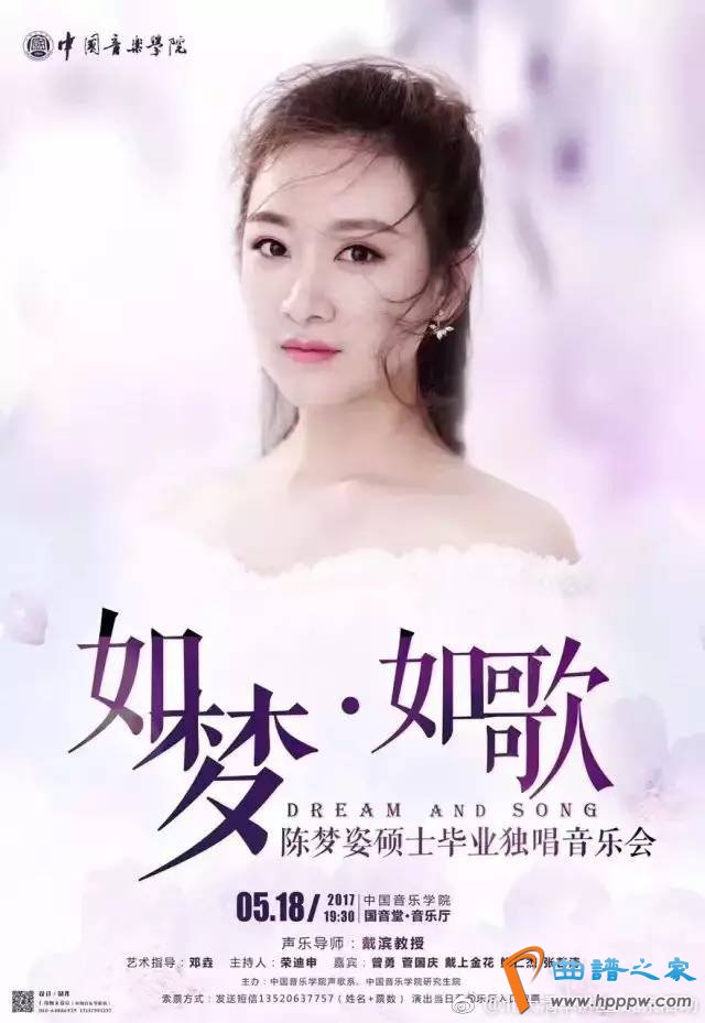 【如梦·如歌——陈梦姿硕士卒业独唱音笑会】2017年5月18日(周四)19!30【上演处所】中国音笑学院国音堂音笑厅【索票格式】发送短信(姓名+票数)