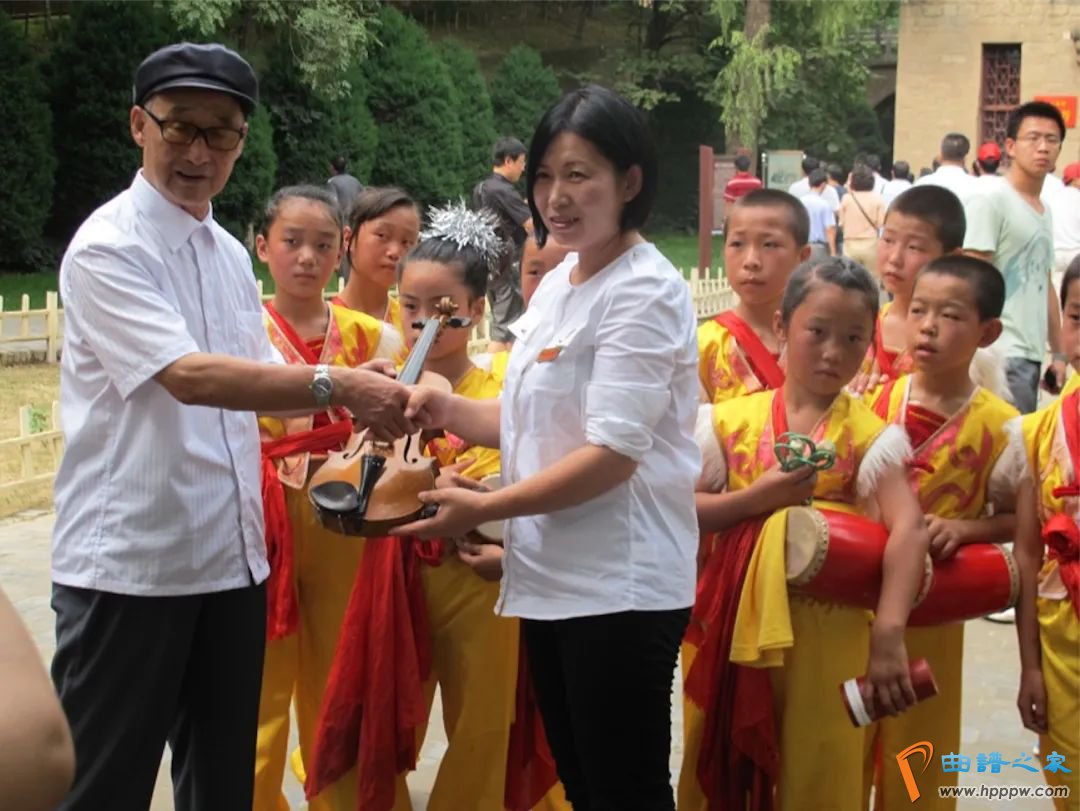 △图为2012年7月28日原鲁艺音笑系学员王卓捐献珍惜的1944年鲁艺自造幼提琴