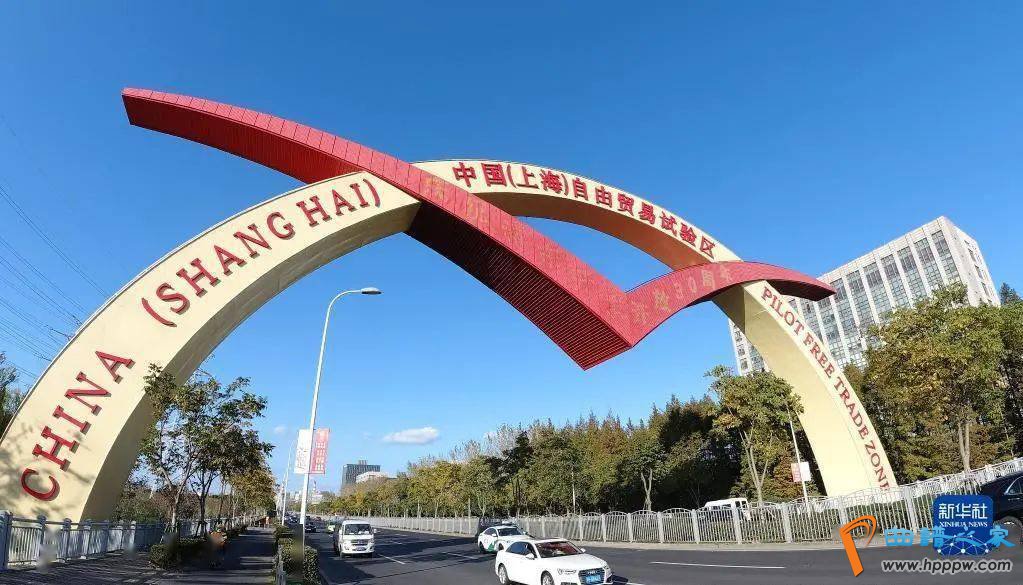 位于上海浦东新区杨高北途上的中国(上海)自正在交易试验区标识门(2020年11月11日摄)。新华社记者 方喆 摄