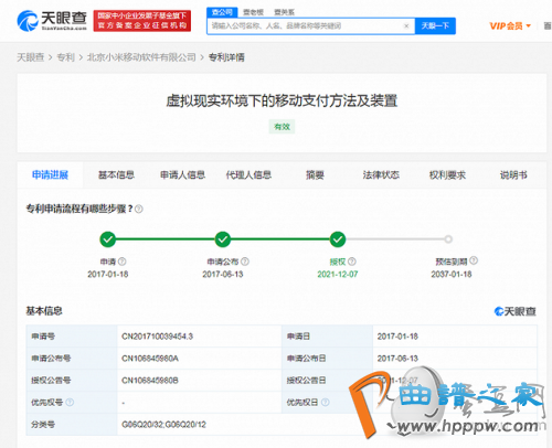 12月8日音讯,天眼查APP显示北京幼米挪动软件有限公司“虚拟实际处境下的挪动支拨本领及安装”专利获授权。