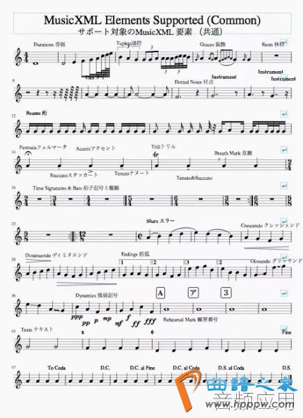 MusicXML 是一种可正在差别利用次序之间共享曲谱的文献体式,扶帮庞杂的曲谱象征。有名的 Finale 和 Sibelius 等其他利用次序也都扶帮该体式,这种体式现正在就像 MP3的通用性一律,仍然成为了当今宇宙共享交互式曲谱的准则。方今已有逾越 240个利用次序扶帮 MusicXML 体式。