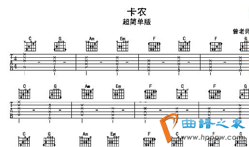2、指法左手必要按和弦,通用的凡是有C、Am、F、G和弦,六条线差别代表吉他的六条弦,从上面往下数,差别为一弦到六弦,有x的就代表你要弹那条弦。同排的X就代表一齐弹的。