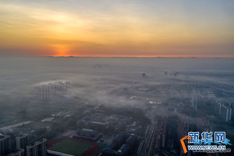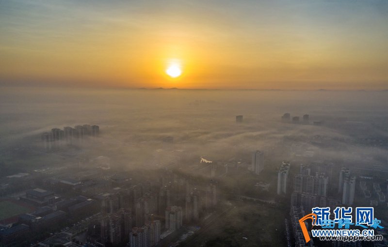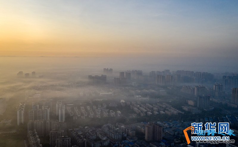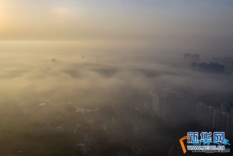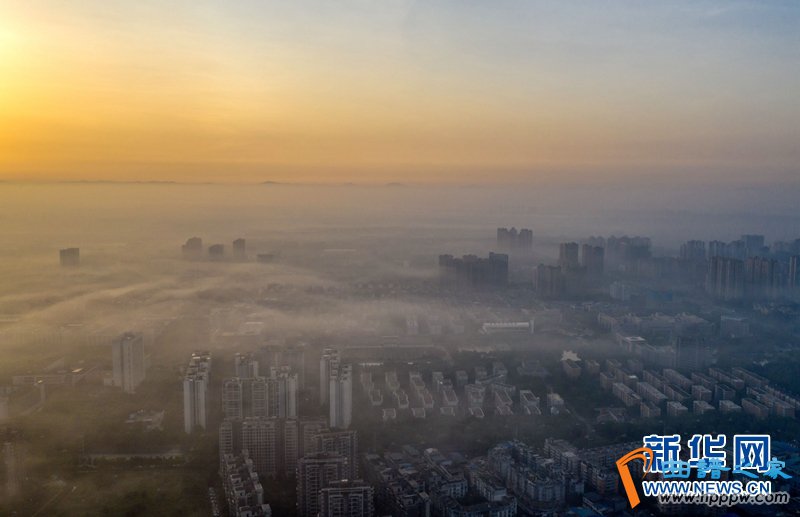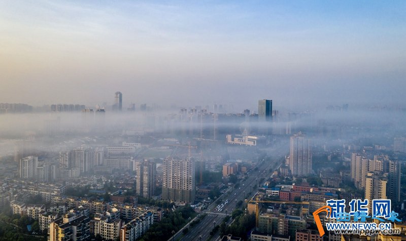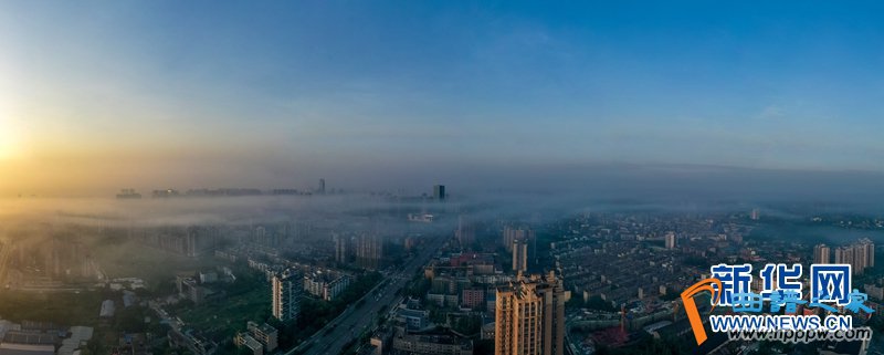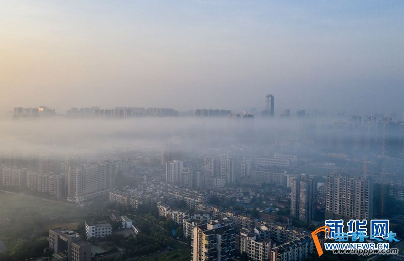 8月9日清晨,雨后初晴的成都市新都城区出现了壮美的云雾景观,初升的朝阳和城市高楼在云雾缭绕下交相辉映,宛若天空之城。