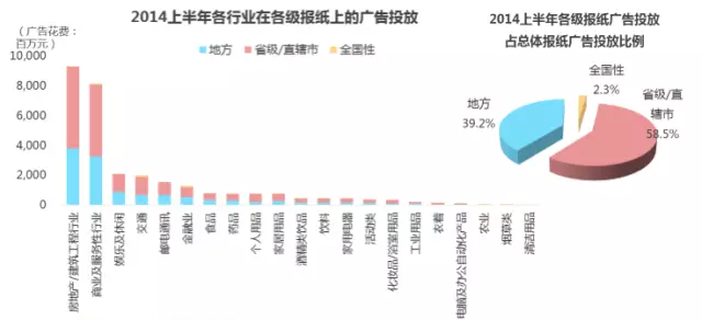 地方报纸广告投放占整体的39。2%,比2013上半年增长2。2个百分点,省级/直辖市报纸广告投放占比减少2。2个百分比。