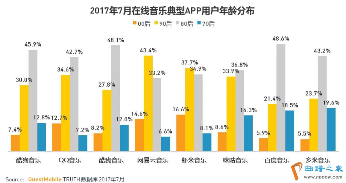 由百度指数的数据可以知道,网易云音乐的用户中男性用户相对比较多,从QuestMobile的数据可以得知网易云音乐的用户以90后为主。