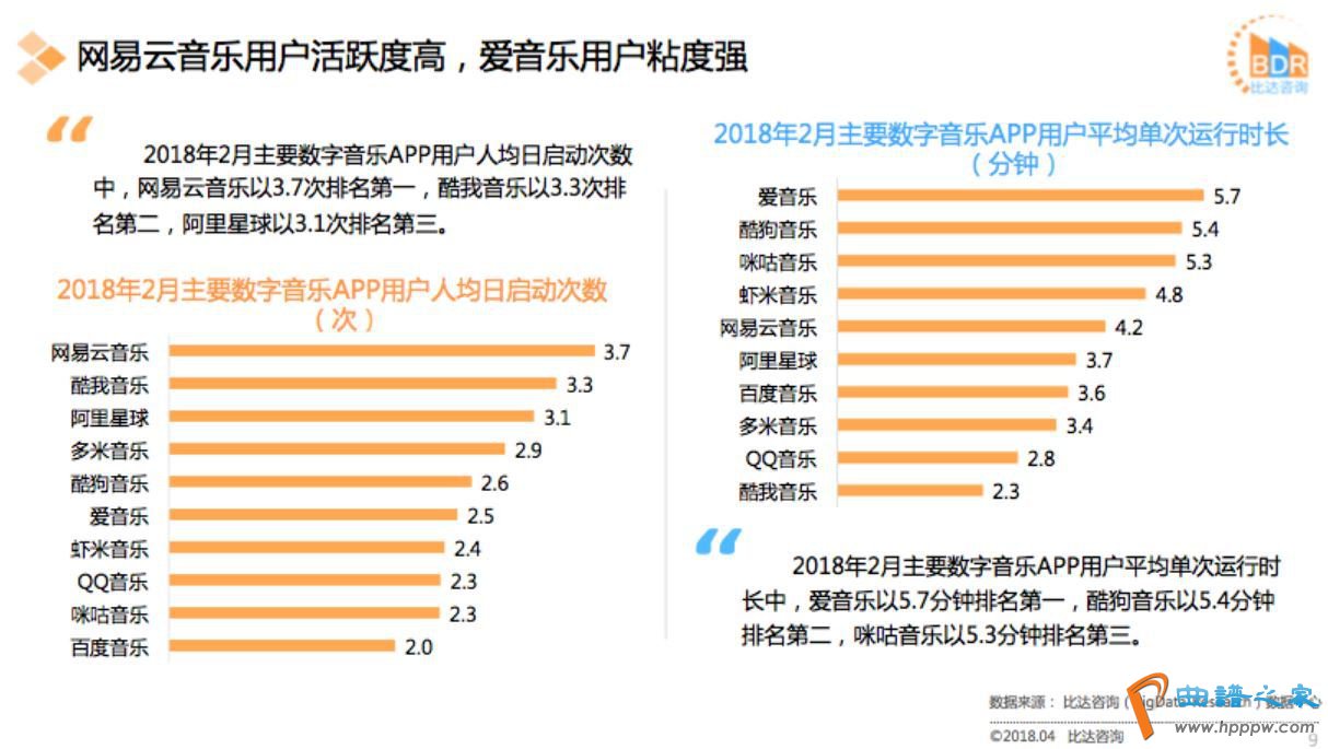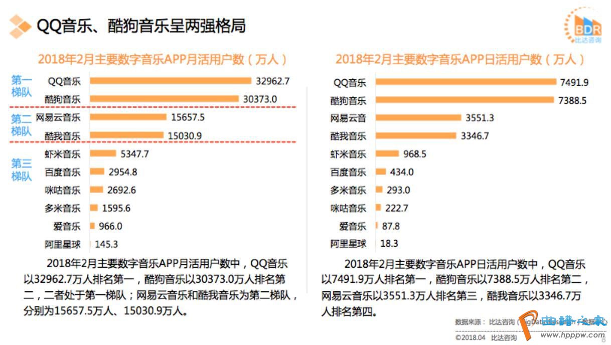 网易云音乐从日活跃人数上讲要明显少于以及酷狗音乐,同酷我音乐一起位于第二梯队。但活跃人数也要超过除了以上四个应用之外其它所有应用的总和。