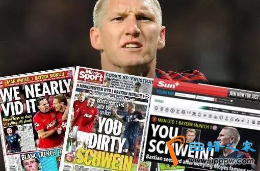 2014年,其时仍效力拜仁的小猪在欧冠比赛中铲倒鲁尼染红下场,英媒利用他的名字大做文章。