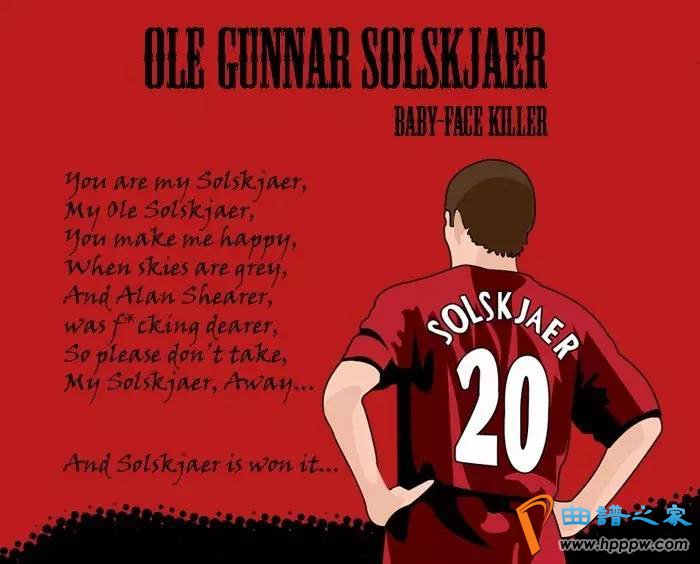 曼联球迷将经典英文歌曲《You Are My Sunshine》(你是我的阳光)改编成《你是我的索尔斯克亚》。同时,娃娃脸的名字为“Ole”,在西语有加油之意,歌词里他的名字直接代替了“Only Sunshine”的位置。