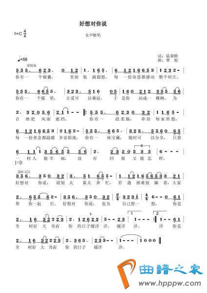 歌曲《好想对你说》由陆新桥作词、曹旭作曲,是2019年吉林省扶贫歌曲创作活动中产生的佳作,作品立意新颖、自然流畅,时代气息浓厚。