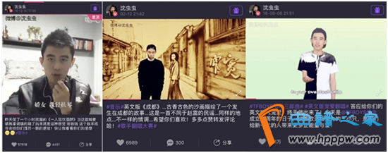 翻阅沈虫虫的美拍首页,在众多音乐视频里,沈虫虫时而将歌词改编、将中文歌翻唱成英文演唱;时而巧妙地将两首曲风迥异的歌曲拼连,歌曲串烧的毫无违和感;时而将大热“神曲”大刀阔斧地改动,就连“接地气”的喊麦《一人我饮酒醉》,在沈虫虫演绎下,也能变成唯美的古风歌曲。尽展出色的创作才能。