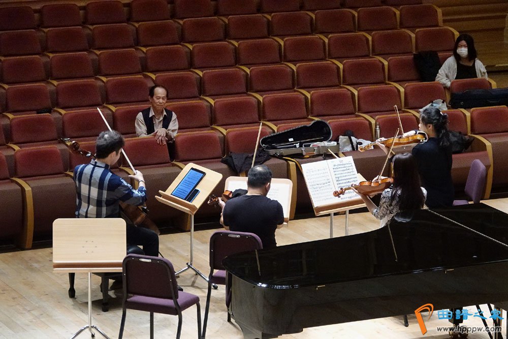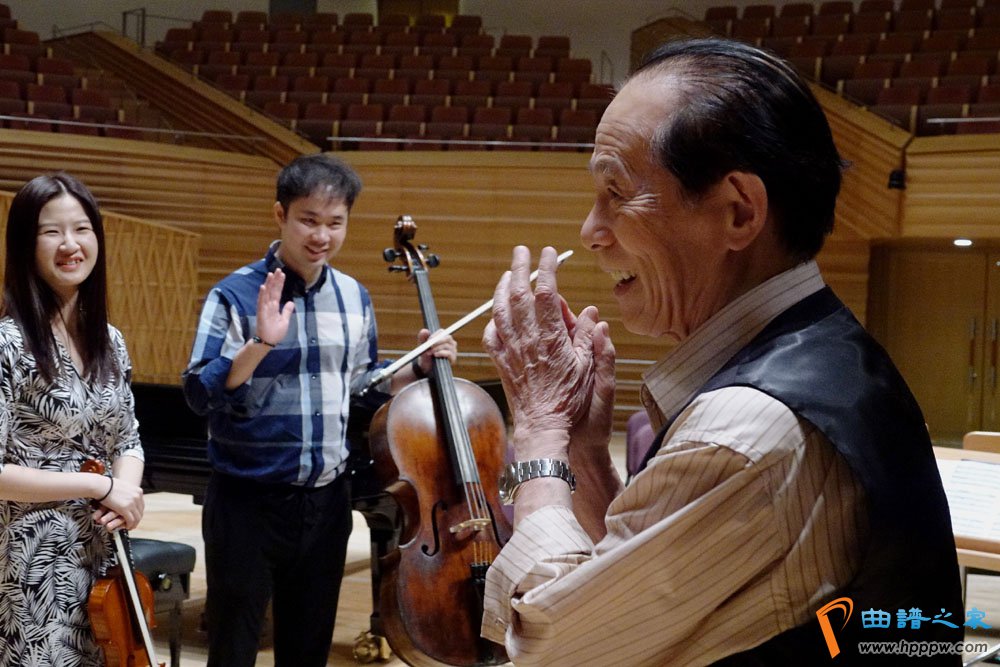 一段3分多钟的乐曲演完,音乐厅里唯一的观众——87岁的作曲家何占豪在观众席起身,为台上的上海ela室内乐社鼓掌。“太感动了!没想到,这首曲子再次奏响,居然相隔62年。”