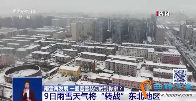 12月9日,雨雪将“转战”东北地区,南部以雨为主,北部以雪为主。沈阳市9日起或有降雨出现,10日凌晨结束,整体以小雨为主,结束前短暂转为雨夹雪。长春的降雨从9日夜间开始,到10日早晨转为雨夹雪。哈尔滨是以雨夹雪开场,到10日凌晨转为阵雪,随后结束。