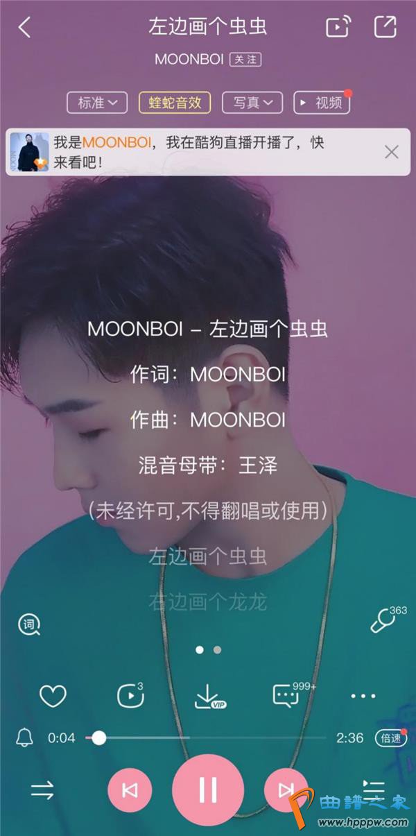 新生代唱作人MOONBOI杨望舒凭借一首《可不可以给我你的微信》火遍全网,席卷各大音乐平台榜单,成为冉冉升起的一颗说唱新星。11月24日,MOONBOI携新单《左边画个虫虫》首次做客酷狗首唱会,唱出属于他的年轻态度,与粉丝聊天互动时欢乐不断,耿直性格圈粉没商量!