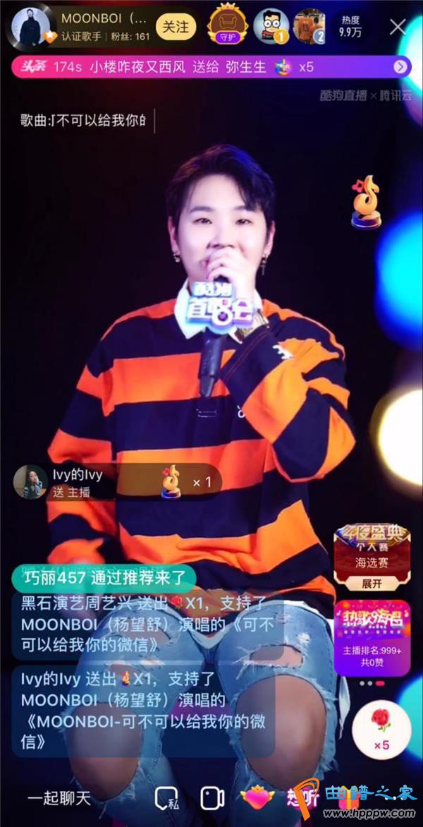 在粉丝们的强烈要求下,MOONBOI带来众人期待的《可不可以给我你的微信》,旋律轻松欢快,歌词朗朗上口,将一见钟情的心动诠释得恰到好处,俏皮随性的嗓音更彰显出他独特的个人魅力,吸引了大批粉丝疯狂点赞送礼,完全沦陷在MOONBOI的歌声里!