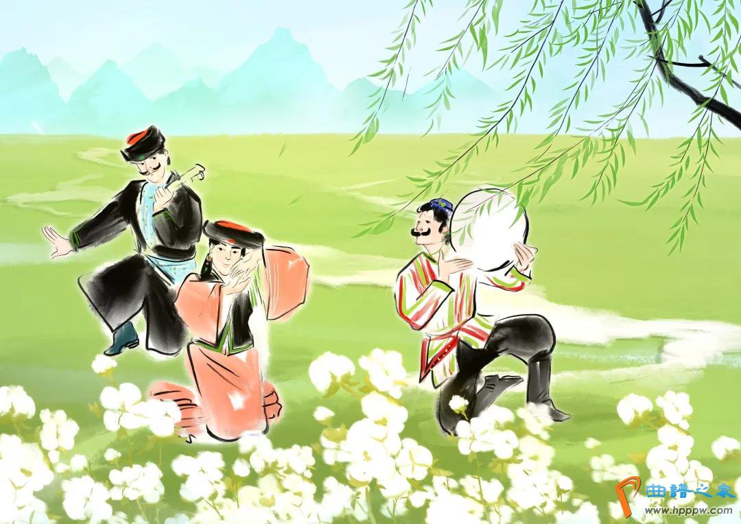民歌,往往代表了一种通俗、朴素、口语化的表达风格。歌词中很少有华丽的辞藻,而是有大量富有动作感、画面感的词汇。王洛宾在对《青春舞曲》进行创作时,虽然进行了汉语翻译、改编,但仍然保留了民歌口口相传的特色,保留了民族音乐的本味。