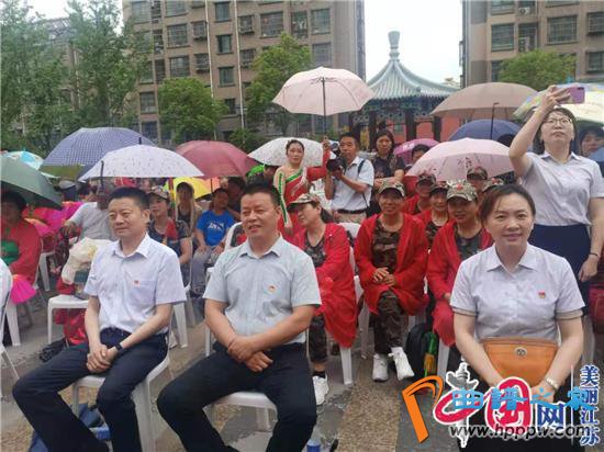 江苏银行淮安分行党委书记、行长张建军,纪委书记、副行长吴劲松,党委委员、行长助理严丽,办公室主任王永红,楚州支行行长关红兵,淮城街道人大工委主任刘君,党工委副书记贾武强,恩来社区党委书记韩家宝与社区、银行四百多名干群冒雨观看了演出。