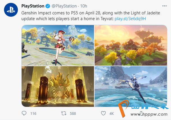 日前,PlayStation官方通过海外社交平台宣布,PlayStation 5的原生版本《原神》将于4月28日发布。