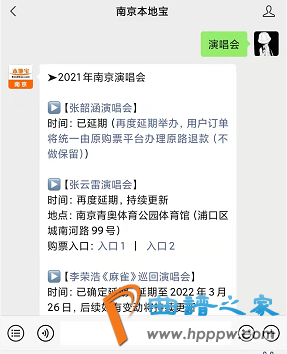温馨提示:微信搜索公众号南京本地宝,关注后在对话框回复【演唱会】可获取南京2021年演唱会活动安排、购票入口。