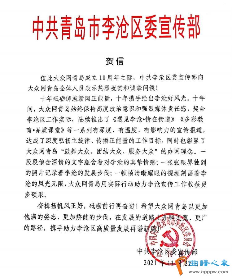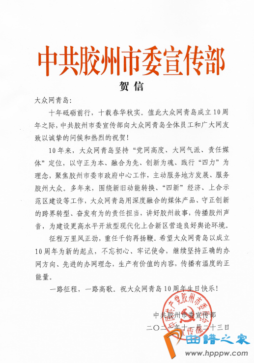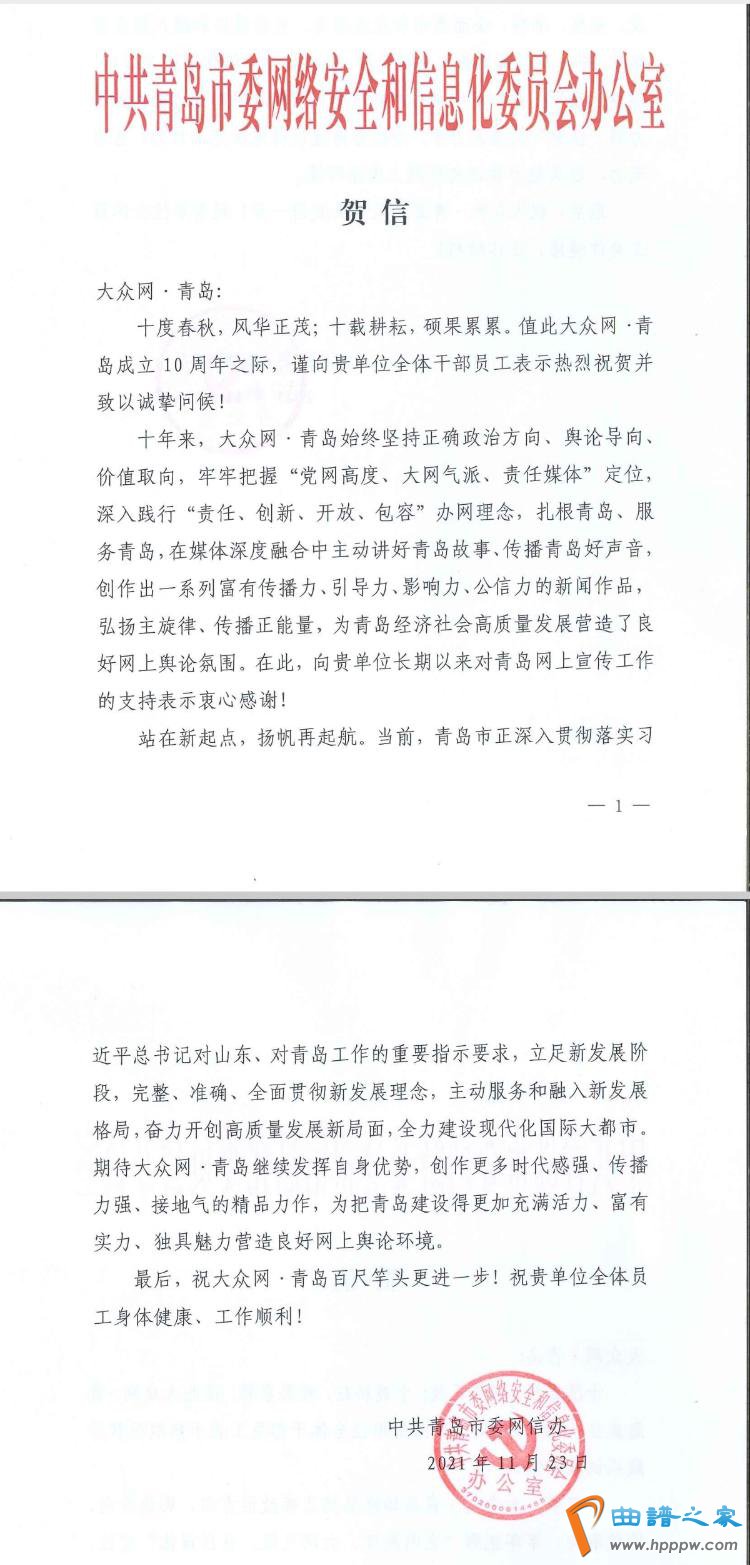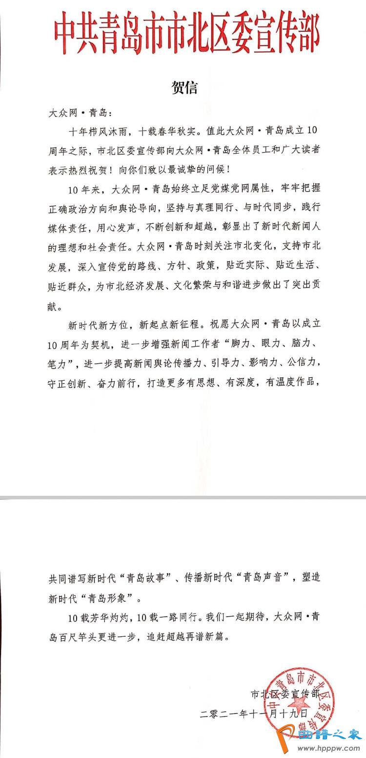 祝大众网青岛10岁生日快乐青岛市区宣传部门发来贺电