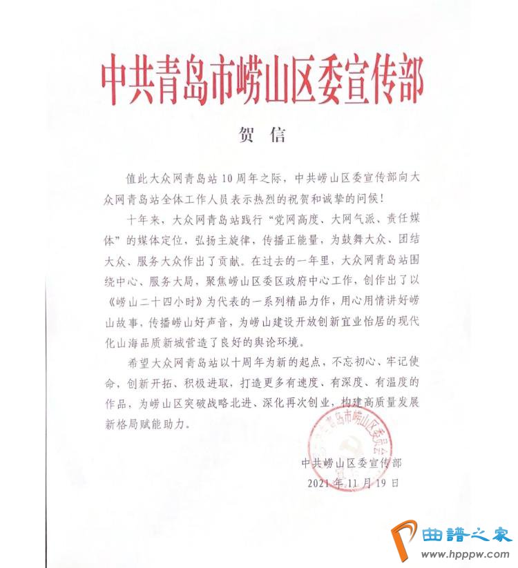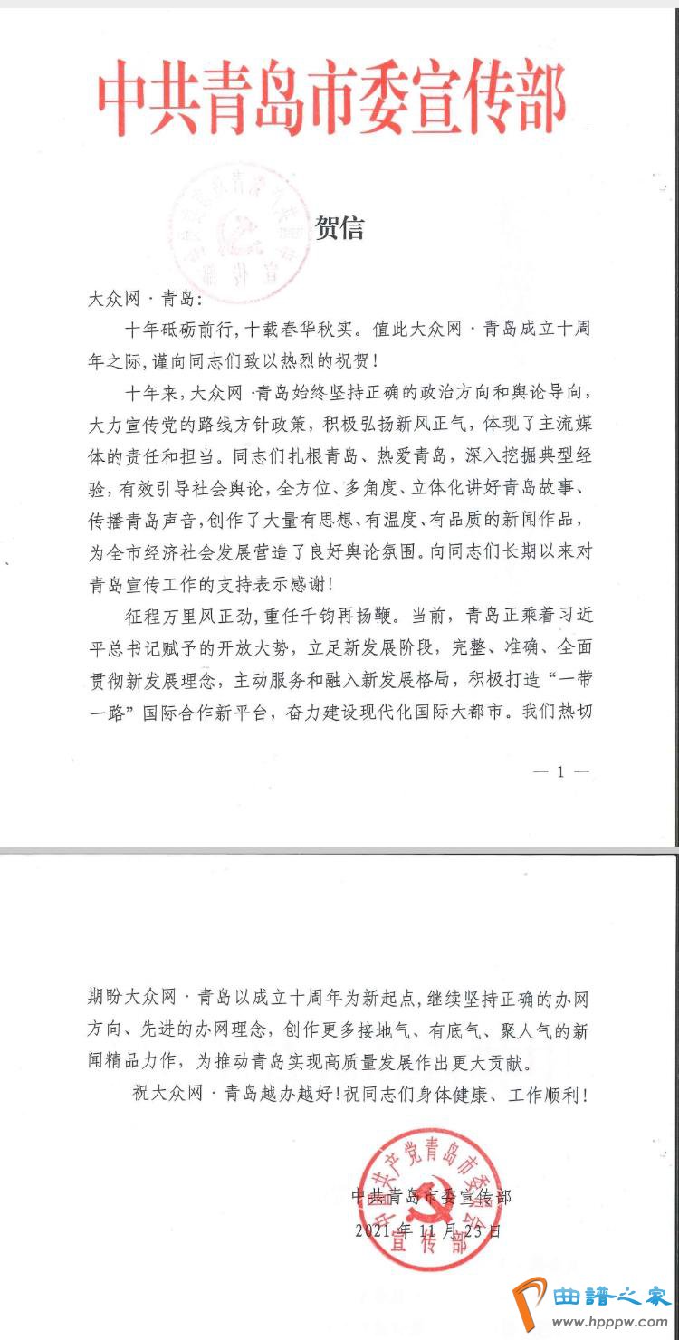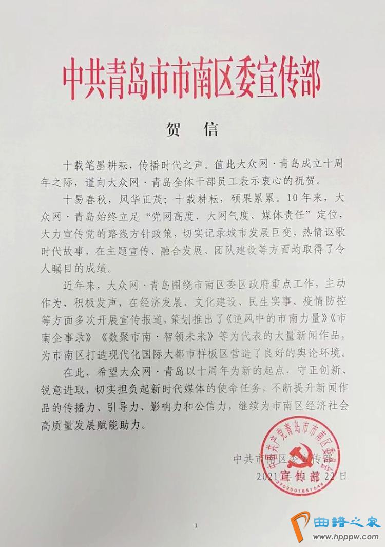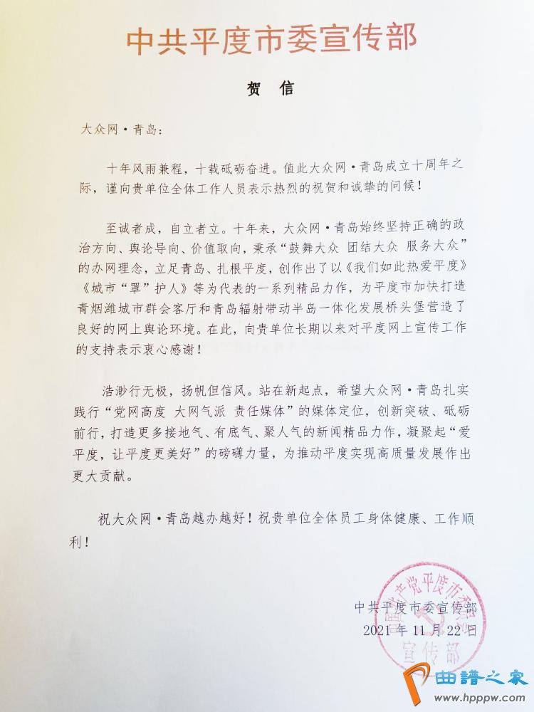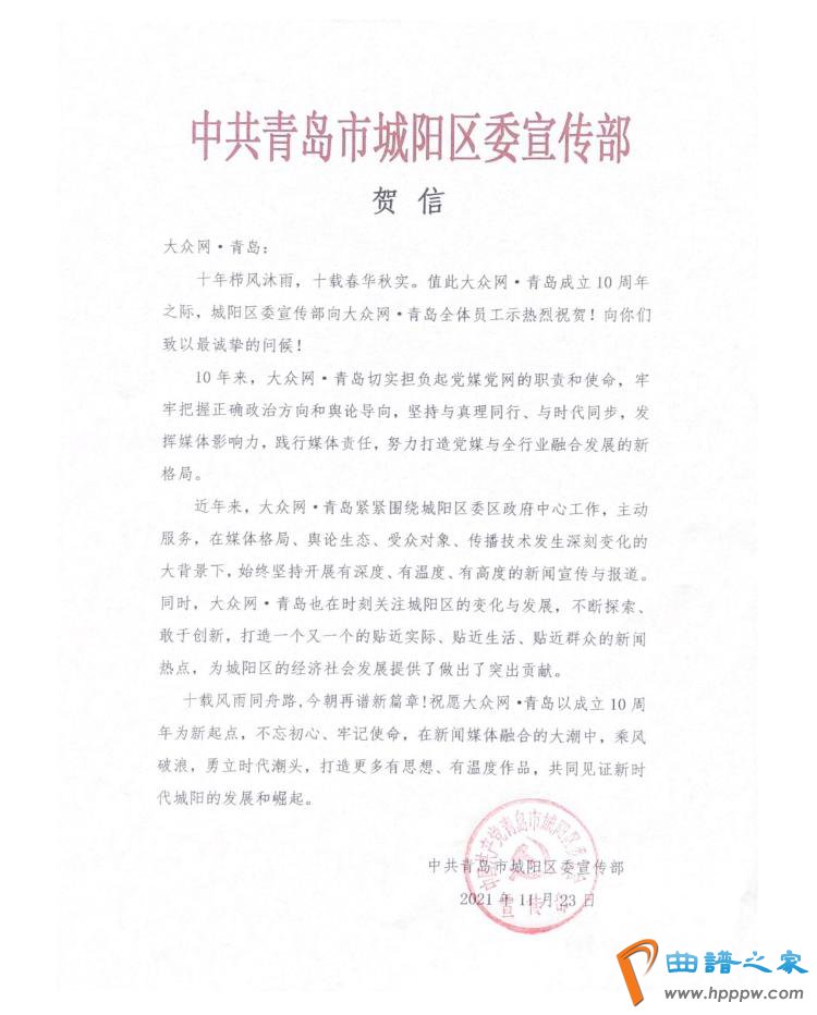 祝大众网青岛10岁生日快乐青岛市区宣传部门发来贺电