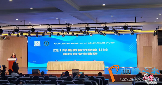仪式上,四川省早期教育行业协会会长周恩睿为成都市现代职业技术学校授予了“保教人才培养基地”。