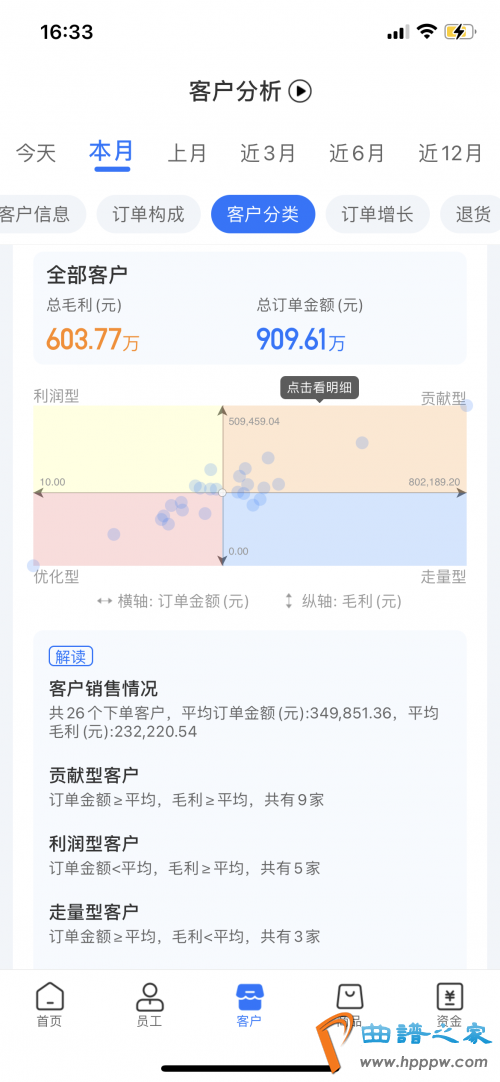 舟易支持客户利润和客户获利能力分析。对于利润降幅较多的客户、负利润客户和获利能力较低的客户进行定位,帮助经销商找到利润提升的方向。