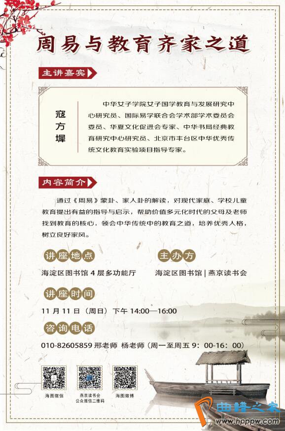 本次讲座将通过《周易》蒙卦、家人卦的解读,对现代家庭、学校儿童教育提出有益的指导与启示,帮助价值多元化时代的父母及老师找到教育的核心,领会中华传统中的教育之道,培养优秀人格,树立良好家风。