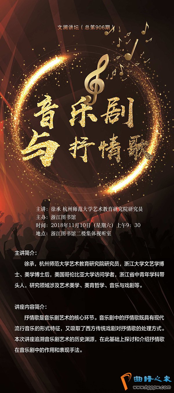 抒情歌是音乐剧艺术的核心环节。音乐剧中的抒情歌既具有现代流行音乐的形式特征,又吸取了西方传统戏剧对抒情歌的处理方式。本次讲座追溯音乐剧艺术的历史渊源,在此基础上探讨和介绍抒情歌在音乐剧中的作用和表现手法。