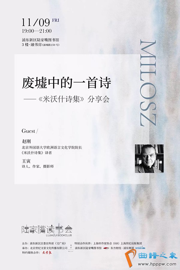 切斯瓦夫·米沃什(Czeslaw Milosz,1911-2004),波兰作家、翻译家,20世纪最伟大的诗人之一。他通晓多种语言,但一生忠于母语,坚持用波兰语写作。1980年,米沃什因其作品“以毫不妥协的敏锐洞察力,描述了人类在剧烈冲突世界中的赤裸状态”,获得诺贝尔文学奖。本周五,陆家嘴读书会邀请到北京外国语大学欧洲语言文化学院院长、《米沃什诗集》译者赵刚和诗人、作家、摄影师王寅,与我们做一场诗的见证。