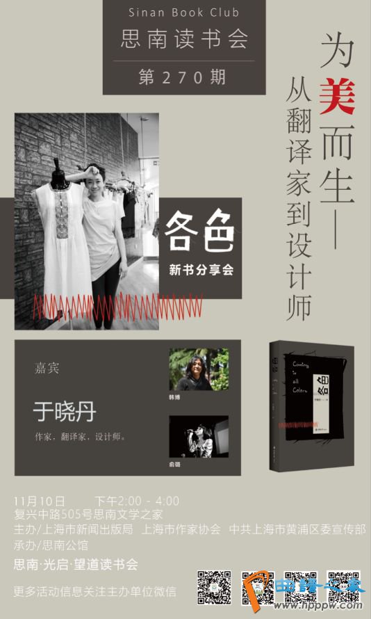 从北京到纽约到上海再到北京,从翻译家到作家到设计师再回归作家,年龄从未成为于晓丹进行人生选择时的障碍。不断探索和尝试的背后,始终如一的,是她对于思想、美和开阔世界的执着追求。11月10日,思南读书会,于晓丹想和大家聊聊与服装有关的文化现象,以及自己作为独立设计师的一些经历与体验。