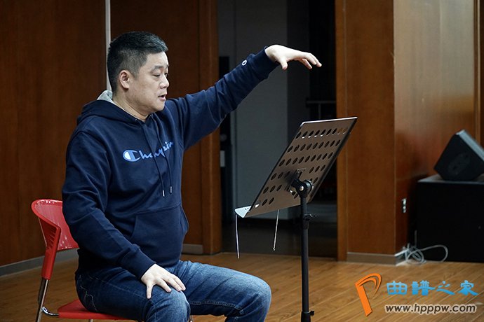 “我拿到简谱之后,当天晚上就把合唱谱改编好,做到晚上一两点钟,第二天就教给大家了”。本次《领航》合唱的指挥方勇一开始拿到的是《领航》齐唱版曲谱,他在其基础上增添男高音、女高音、男中音、女中音四个合唱声部,使歌曲“唱出来更恢弘,更立体化”。