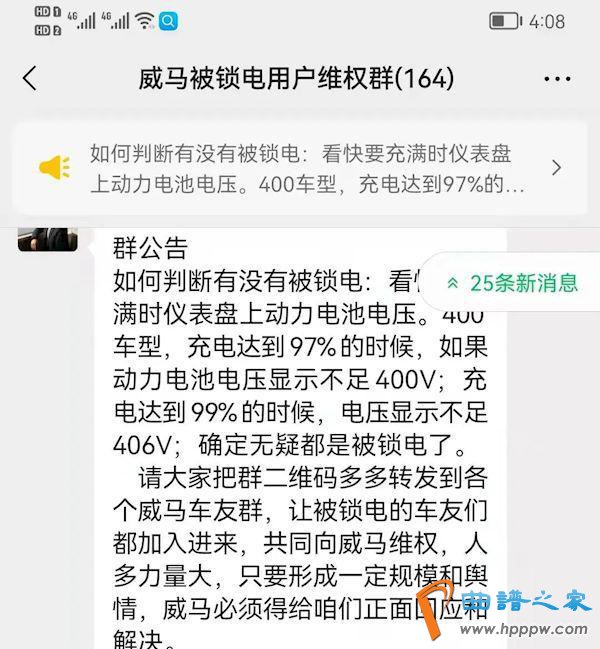 车主经过互相交流后,质疑自己的车辆,被威马汽车偷偷摸摸“锁电”了。有车主指责威马汽车,未经过消费者同意锁电,造成车辆电池充电变少续航严重缩水,与购买时标称的400km相差甚远。
