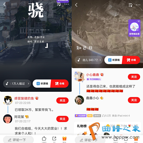 独唱作品神仙打架、各具风格,合唱玩法更是直接开启了这首歌的翻唱新世界大门。K歌用户“感冒复健的鱼”和“阿花絮”发布的合唱作品,两位女生音色一个豪迈,一个温柔,小编竟不小心磕出了CP感;K歌用户“小心鑫鑫”更是和自己的小号“鑫鑫小心”合唱,还在评论区里自己跟自己“商业互夸”,也是很有意思了!照这么玩下去,是不是一个人也能组成一支阿卡贝拉乐团了?