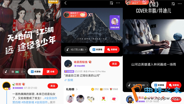 在热门翻唱作品中,小编听到了各种不同风格的《骁》,每一首都把小编狠狠地惊艳了一把。K歌用户“踢踢”的御姐音,将女性的英姿飒爽演绎的淋漓尽致,小编听完之后,脑海中俨然浮现了花木兰的形象,网友评论道!“姐姐好飒啊”、“这是原唱吗?这么好听”。K歌用户“褚晨茜鲸鱼”则用流行唱法进行演绎,略带烟嗓的气泡音把这首“飒”歌唱出了诗酒人生、逍遥自得的意境;同样是男声,K歌用户“张青远”则用钢琴弹唱的方式开启了这首歌,舒缓的钢琴配上温柔的男声,翩翩少年温润如玉也不过如此了。总之,每一首神仙翻唱都是让小编想单曲循环的程度!