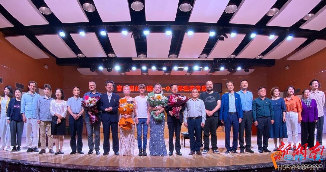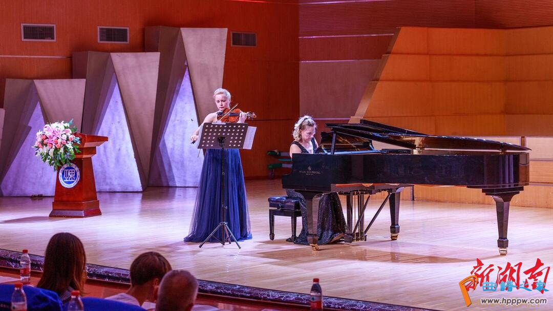 湖南理工学院音乐厅内,安娜•加宁娜抚弄小提琴弦,卡佳•茹罗娃弹钢琴,以“音乐里的中国”为主题,演绎了《茉莉花》《渔舟唱晚》《庆丰收》《梁祝》等中国经典曲目。琴声悠扬,表达了艺术家对“第二故乡”中国深沉的爱,赢得阵阵掌声。
